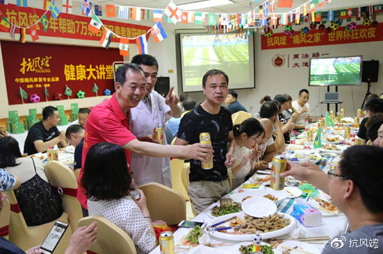 2018年6月22日晚,60余位痛風(fēng)患者及家屬一起歡聚沈陽(yáng)抗風(fēng)竤中醫(yī)門(mén)診二樓多功能廳,和抗風(fēng)竤的醫(yī)生、護(hù)士、康復(fù)指導(dǎo)師們,一起度過(guò)了個(gè)難忘的世界杯之夜。